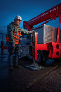 Der E-STEIGER® AMPERO TBR 260 E erfordert im Arbeitseinsatz keine Umstellung der Nutzungsgewohnheiten, verglichen mit einer konventionell betriebenen LKW-Arbeitsbühne.