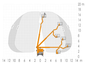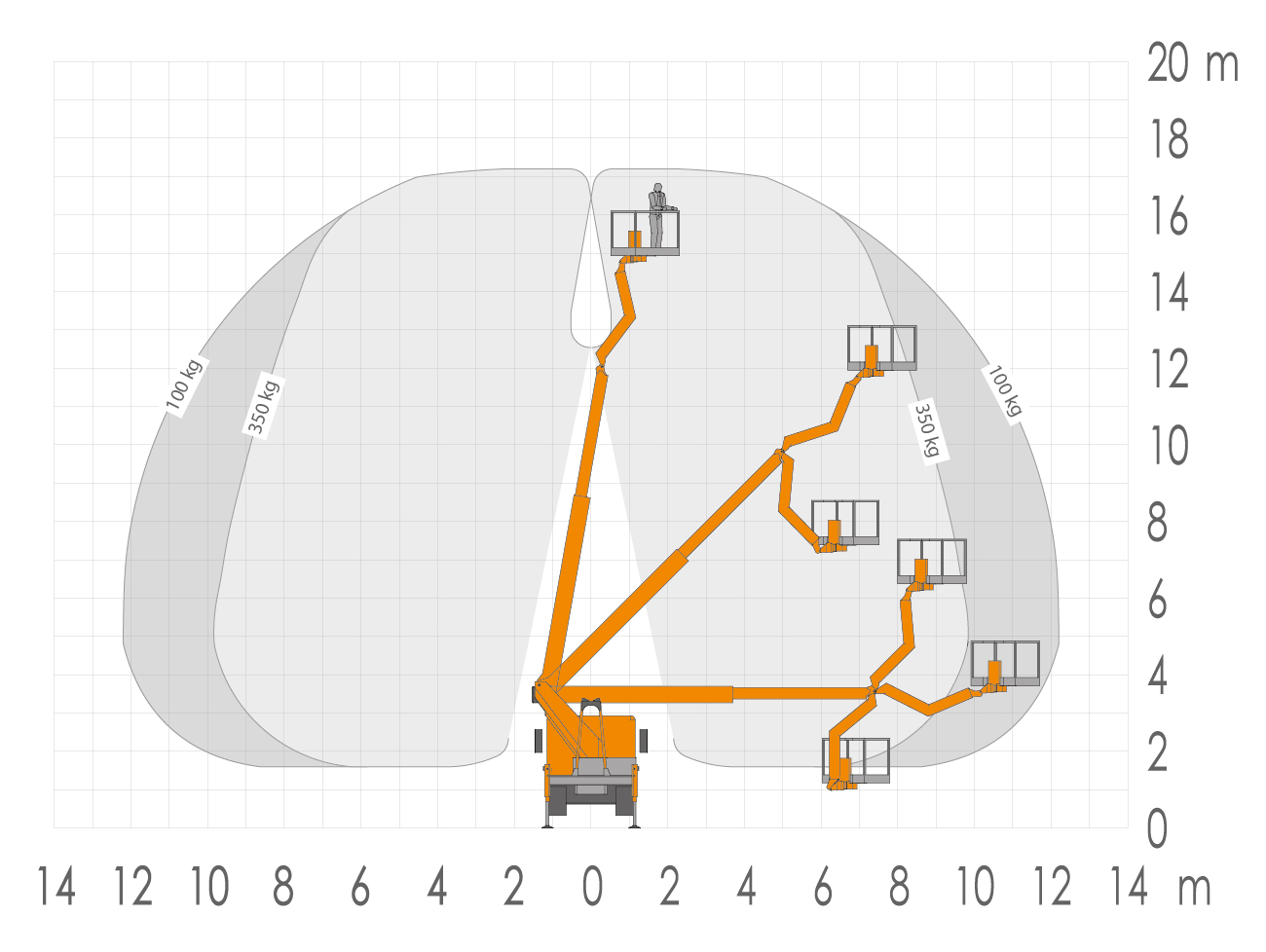Mit einer Gesamtlänge von 7,48 m, einer Bauhöhe von 3,46 m und einem Radstand von 3,6 m ist der T 170 äußerst kompakt gebaut und besticht gleichzeitig mit Leistungsdaten von 17 m Arbeitshöhe und 12 m Reichweite bei durchgehend kreisrundem Arbeitsbereich (100 kg Korblast). Diese Features, gepaart mit dem um 185° beweglichen RÜSSEL ®, verleihen dem T 170 im täglichen Einsatz ein Maximum an Flexibilität und Beweglichkeit.