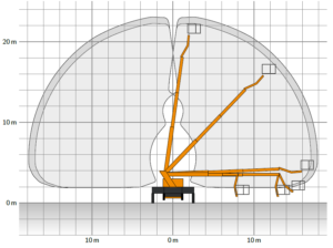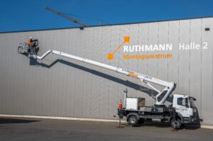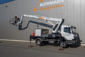 Der um 185° schwenkbare, 2,85 Meter lange Rüssel machen die LKW-Arbeitsbühne T 230 XS universell einsetzbar und ermöglicht Arbeiten an schwer erreichbaren Stellen.