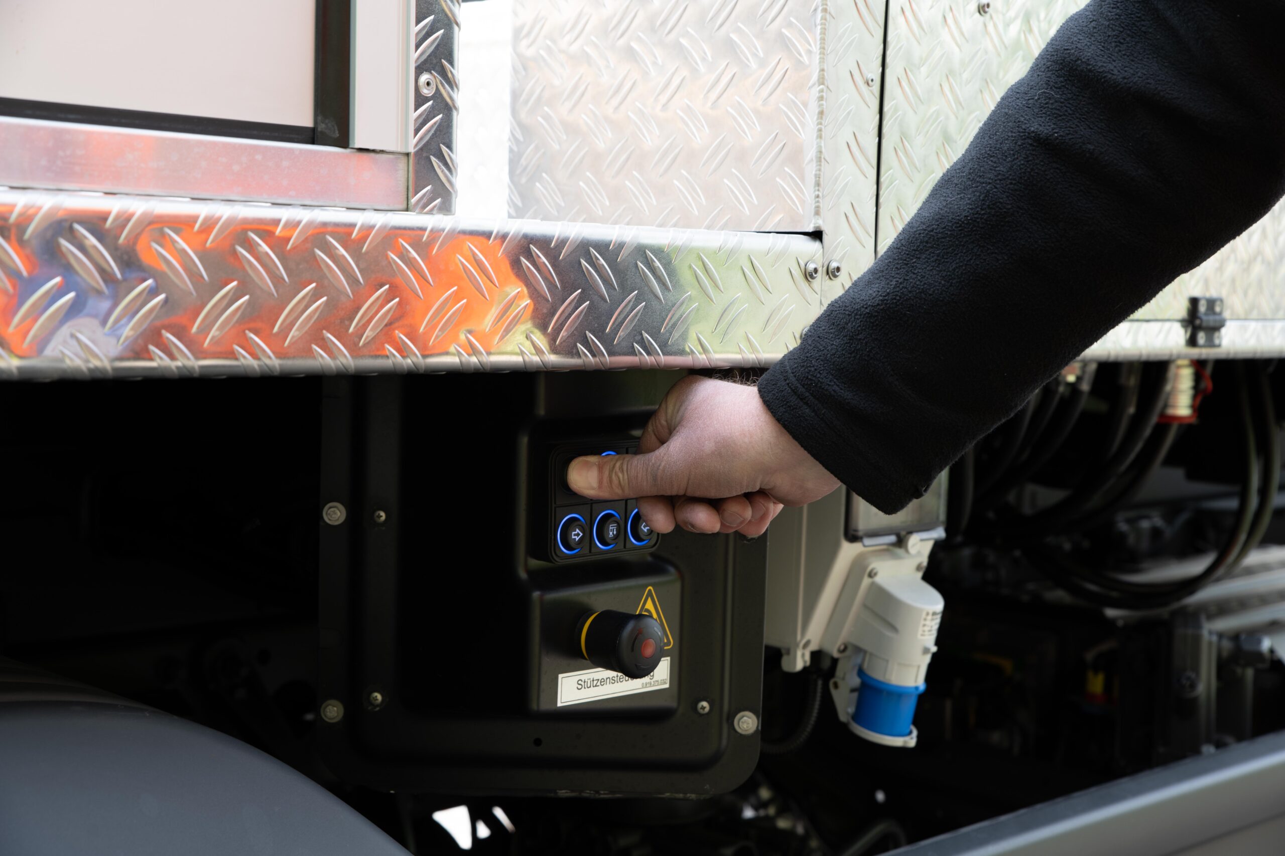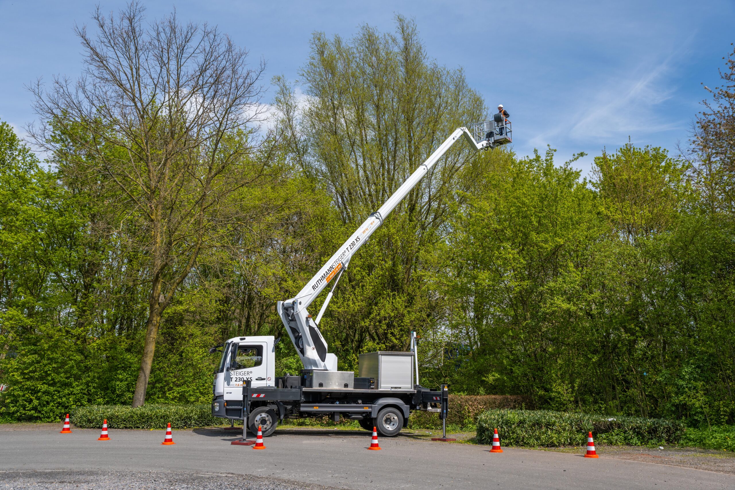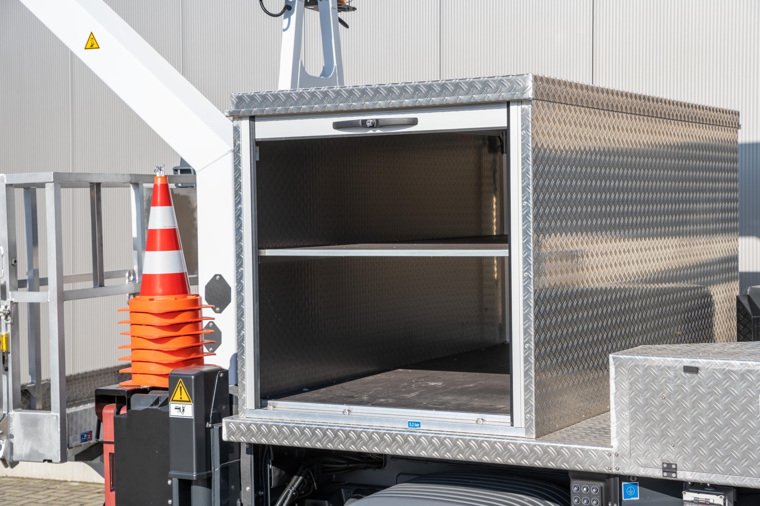 Das 7,5-t-Fahrgestell bietet ausreichende Nutzlastreserven und erreicht bis 600 kg Zuladung. Auch mit einem geräumigen Kofferaufbau steht hier noch ausreichend Reserve für Werkzeug und Material zur Verfügung, was den STEIGER® T 230 XS ideal für Baumschnittarbeiten oder Wartung und Instandhaltung macht.