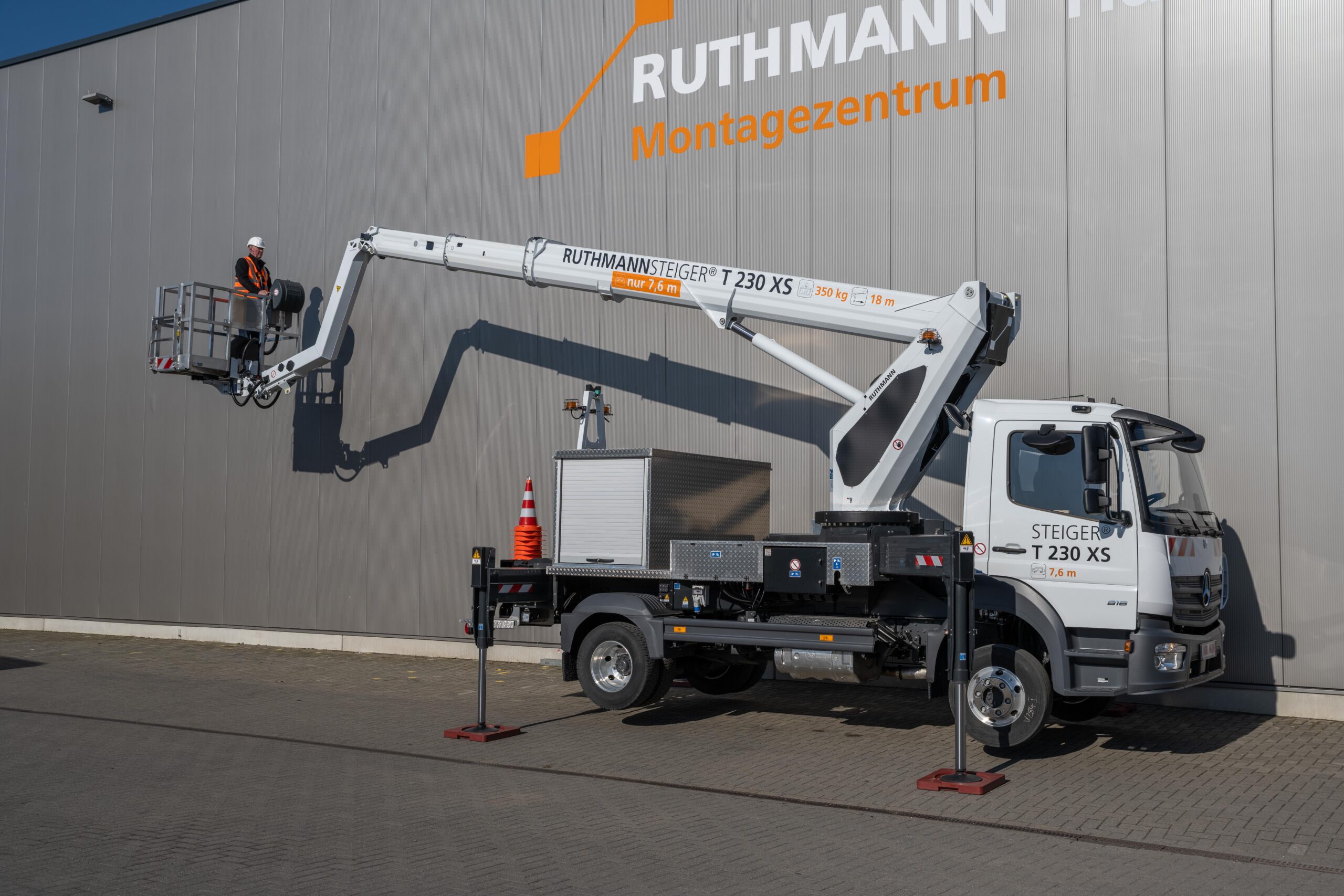 T 300 XS haben wir nun dem STEIGER® T 230 ein Update verpasst und präsentiert ihn als STEIGER® T 230 XS. Das echte Multitalent ist geeignet für Vermieter, Kommunen, Garten- und Landschaftsbauer, Gebäudereiniger sowie für Maler. Mit einer Arbeitshöhe von 23,00 Metern und der maximalen seitlichen Reichweite von 18 Metern ist der T 230 XS allen Herausforderungen gewachsen. Dabei ist er mit einer Gesamtlänge von nur 7,59 Metern kompakt und gut zu manövrieren.
