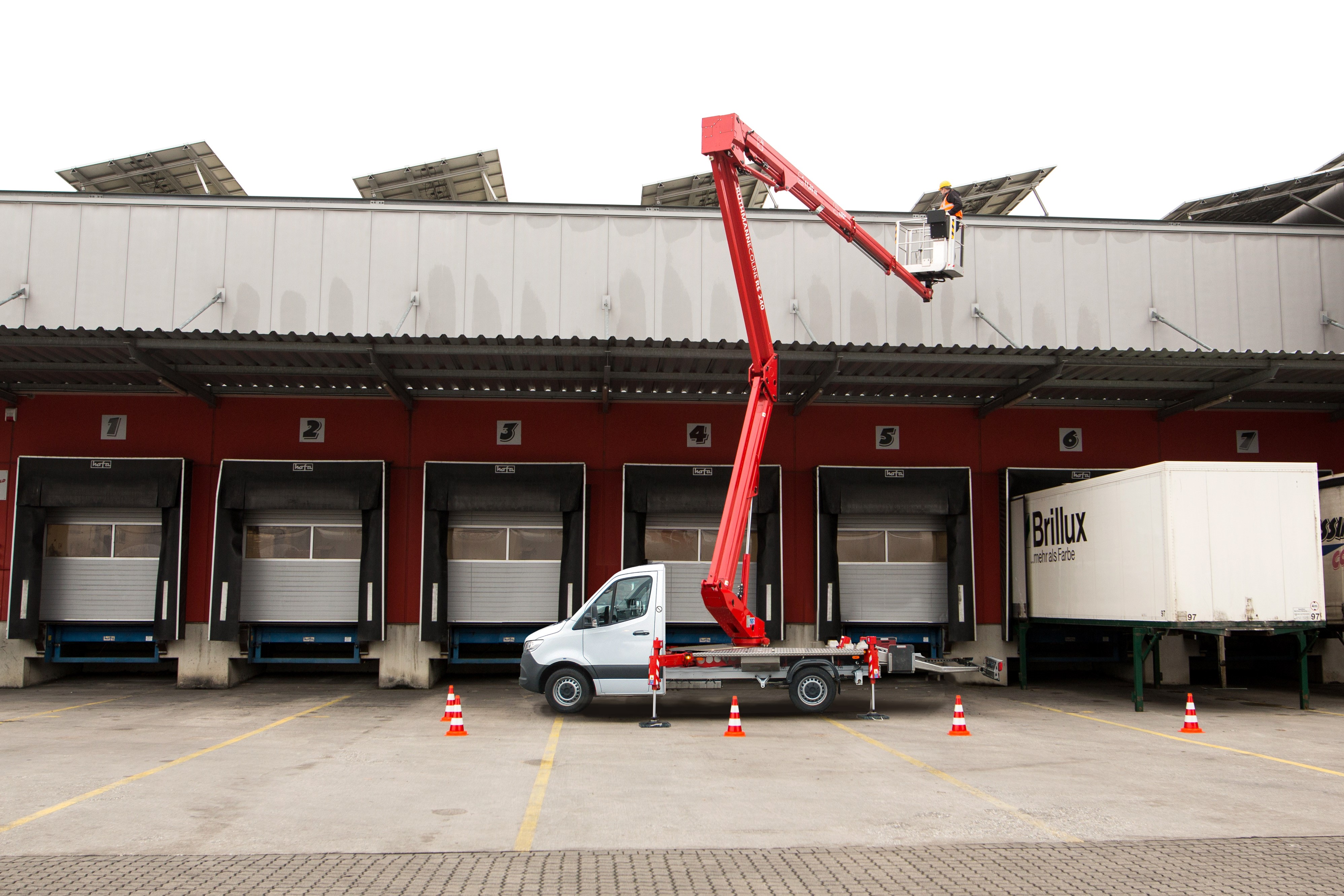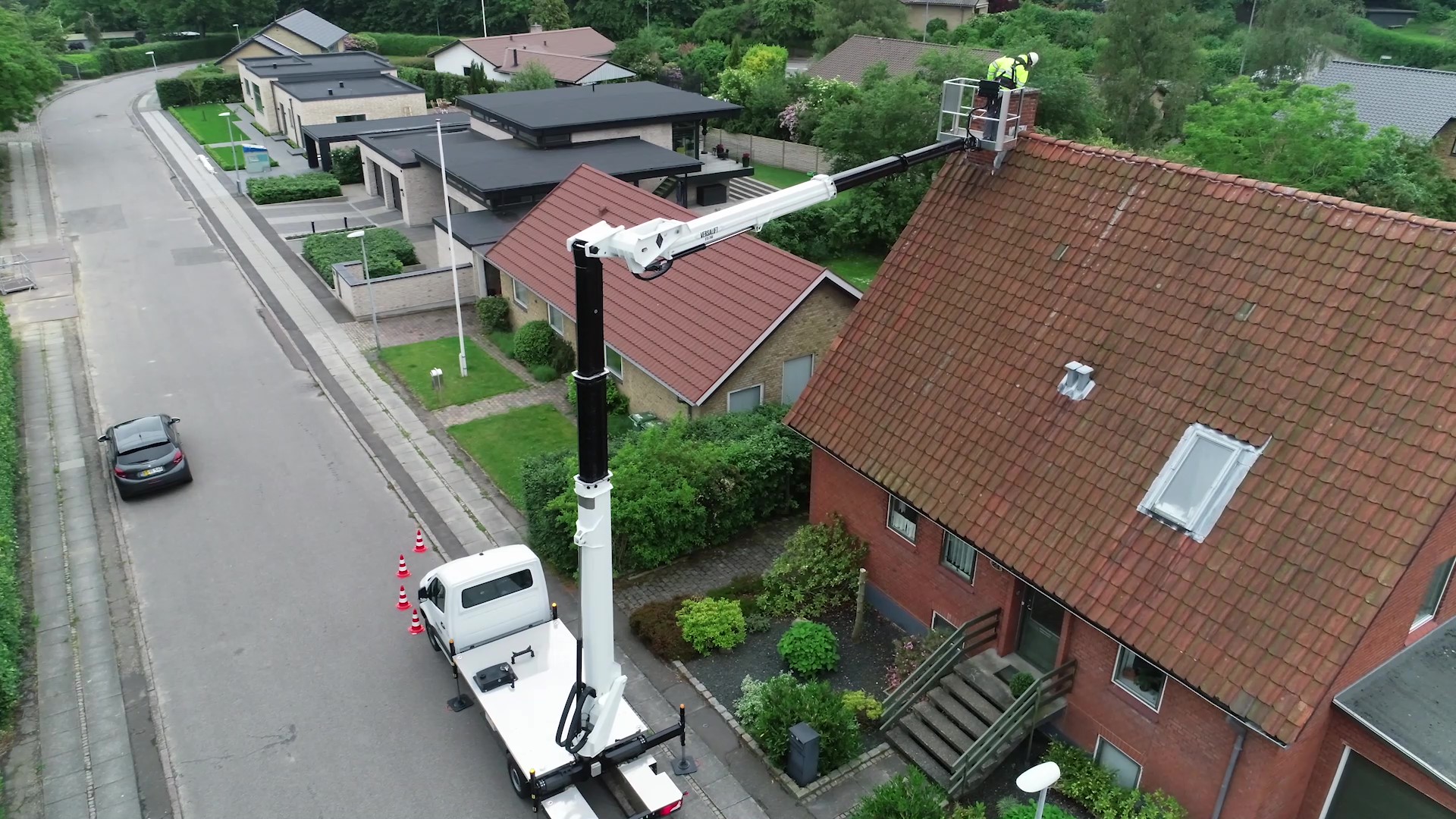 Der VERSALIFT VTX-240 ist einer der Favoriten von Dachdeckern und Spenglern. Mit der 3,5 t LKW-Arbeitsbühne und ihrem hochgelegenen Knickarm arbeiten Sie einfach über Hindernisse hinweg.