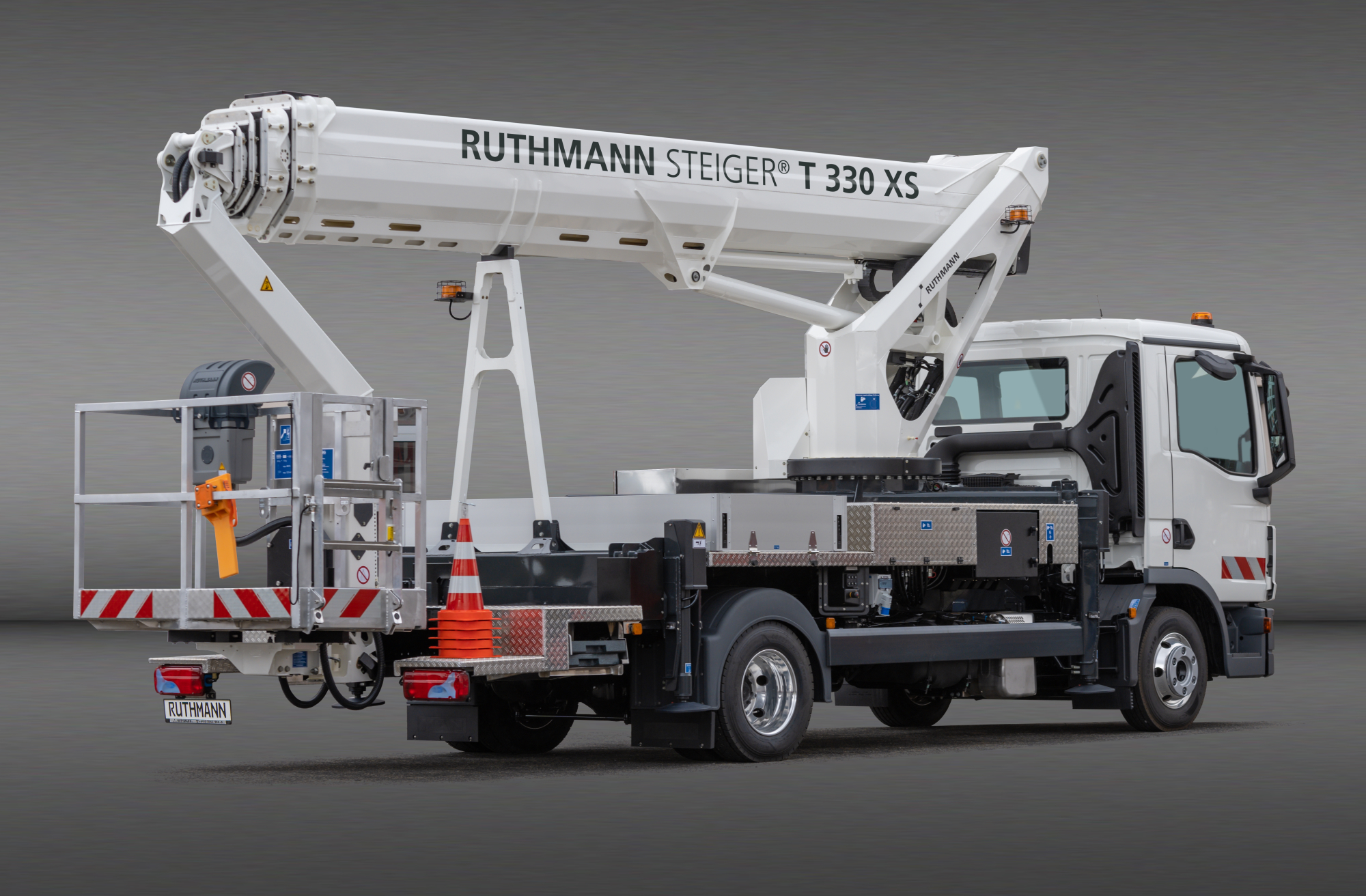 Der STEIGER® T 380 XS ist RUTHMANNs neueste Entwicklung im Segment der LKW-Arbeitsbühnen. Das Gerät kombiniert kompakte Maße mit herausragender Reichweite und überzeugt mit praxisnahen technischen Lösungen.