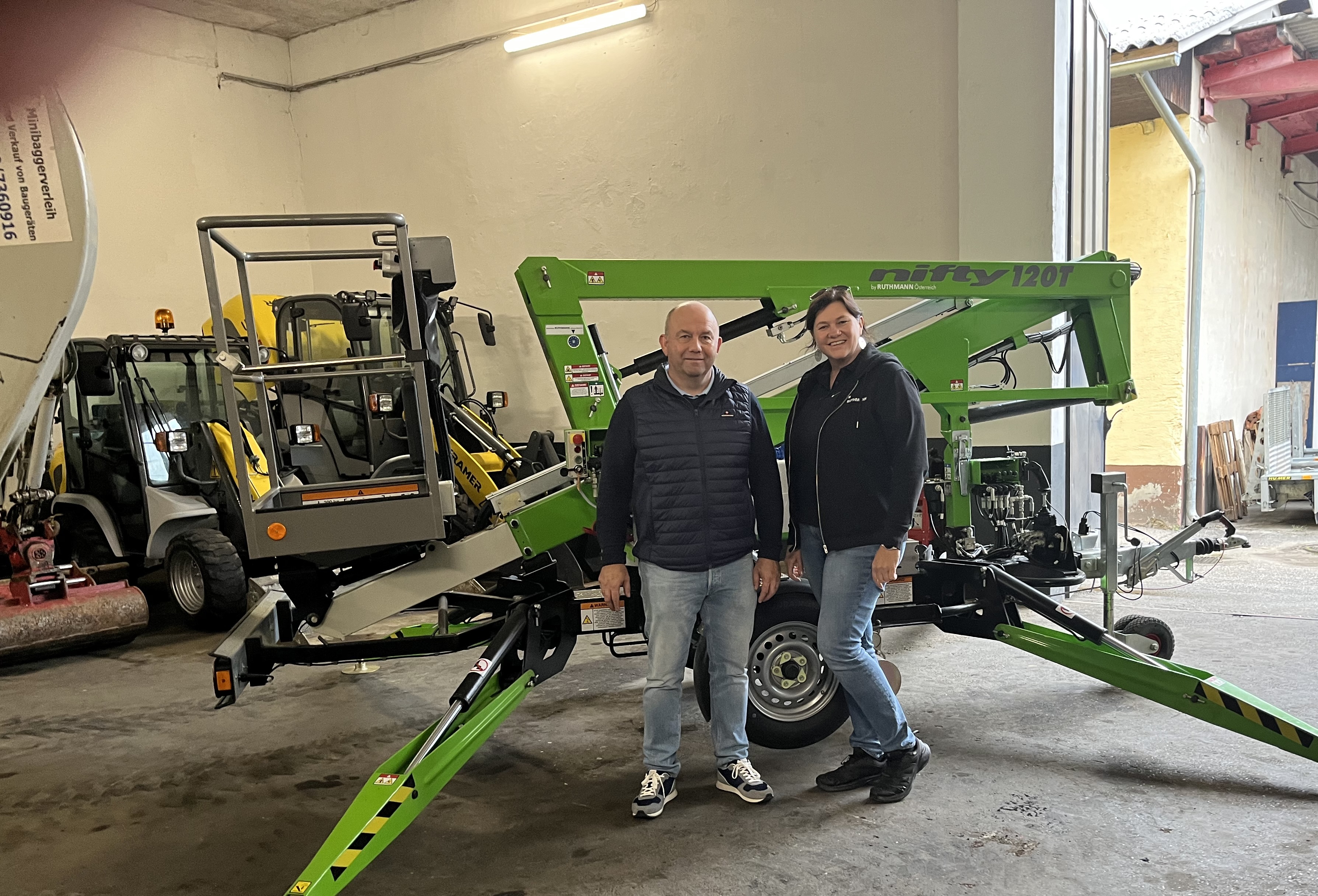 Jessica Wölkart (RMÖ) übergibt die gebrauchte Anhängerarbeitsbühne NiftyLift 120 TET